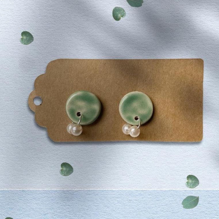 These cute hand made ceramic studs glazed by copper oxide, And attached pearl beads will look great with any outfit, day or night.